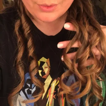 I think this is the coolest curling iron ever! No burning yourself, and really easy to do. Easy to charge, and I love it. It's great if you have kids too. I can see myself curling my daughter's hair a lot because there is less risk to burn. You get lovely little spiral curls. I love it. I can easily see myself putting this in my purse and taking it with. I love it. I love that this is effortless. I hate curling my hair manually when I straighten it.