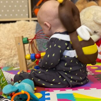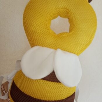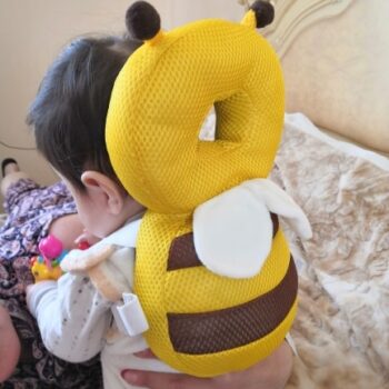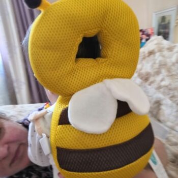 This little bee backpack has literally been a life saver. My 10 month old has been wearing it consistently for the past month and a half and it has saved him from smacking the back of his head on our tile floors too many times to count. He was a little interested in trying to pull it off when we first put it on, but now he wears it all the time and doesn’t seem to even notice it is there. Such a simple, cheap, and effective solution for a common baby issue.