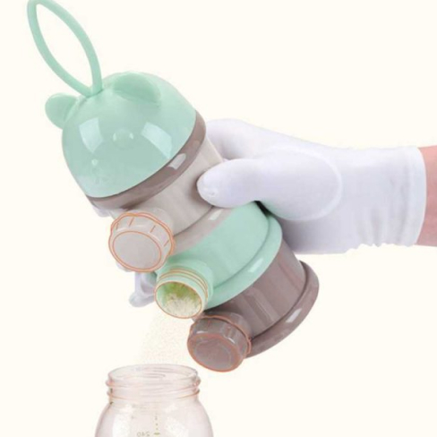 Each Baby Powder Container from us features three easy-to-use containers for prepping snacks and formula powder for your little one. No more mess or bulk, whether in the kitchen counter or in the backseat of a car. Each layer carries 60 grams of whatever you need, and features a lid-screwed side dispenser, making it perfect for dispensing formula or powders. No fussy spoons or lids.