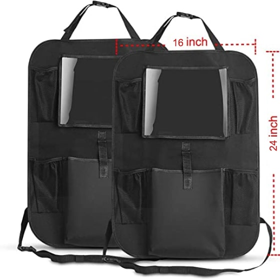 Discover six mesh pockets, one center pouch, and one transparent pocket for tablets and devices. Whether it’s snacks, sunglasses, candy, or toys, have all your family’s needs and wants in one place — and not scattered across the backseat or side storage pockets.