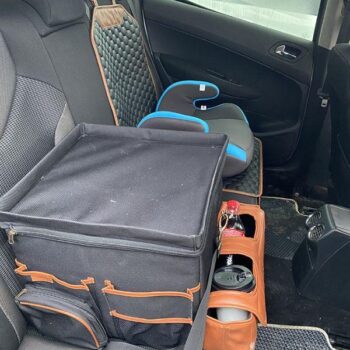 Now this is my favorite car organizer! I received my order a month ago. I purchased this to keep in the back seat with my son. Inside, I stored everything that was lying in my car and didn't have its place. And I use the pockets to store my son's toys, snacks and drinks. So convenient! My son also loves the lid and uses it as a table. High-quality, stylish, and really versatile organizer! Thanks a lot!