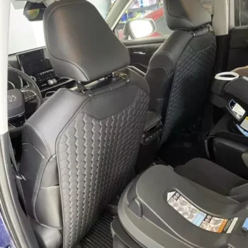 Our seat back protector features a five-layer construction with upgraded premium eco-leather on top, two layers of high-density foam, 600D Oxford, and an anti-slip rubber backing.