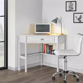 Sleek White L-Shape Home Office Computer Desk with Movable Monitor Stand