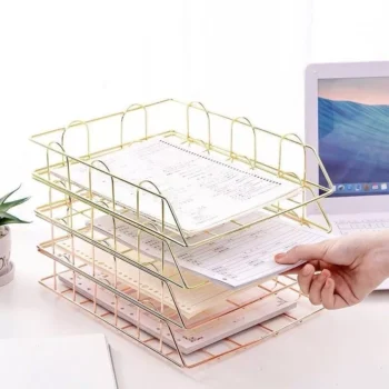Sleek Black Metal Mesh Desk Organizer & Letter Sorter