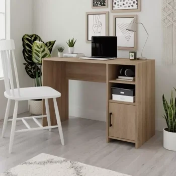 Versatile Summer Oak Computer Desk with Adjustable Storage