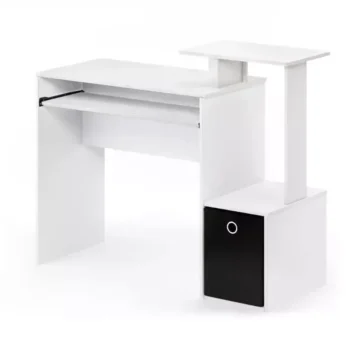 Modern White Wooden Computer Desk with Drawers and Keyboard Tray