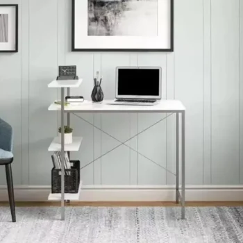 Space-Saving Home Office Writing Desk with Shelves & Sturdy Metal Frame