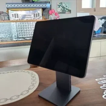 Loving this iPad stand! It's super sturdy with a strong magnet and the side ports are a nice touch. The included USB-C cord is a great bonus. Overall, a fantastic product!