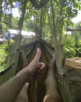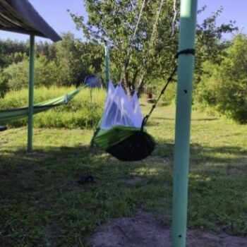 Used this hammock for 4 nights in the Olympic Nation Park, it was light, easy to set up, and very comfortable. I’d give it 5 stars but the tree straps that come with it are a little jinky and too short for most trees in Western Washington. Before I went on my trip I ordered different 20’ long straps.
