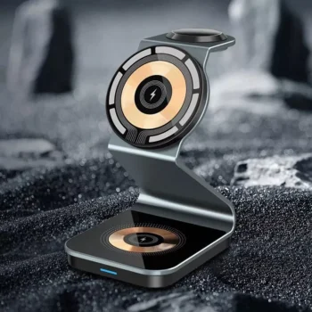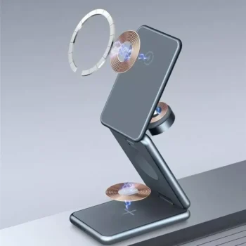 3-in-1 Magnetic Foldable Fast-Charging Wireless Charger Stand for iPhone 14, 13, 12, Samsung Galaxy Watch, iWatch