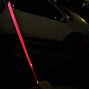 This is the third of this kind of leash that I have purchased. They all serve the purpose, however the other two stopped working almost immediately. I have high hopes for this one because of the extra swivels and fabric at the handle and at the end. The extra piece at the handle permits me to wrap the leash around my hand without slowly breaking down the wire that supports the lights.