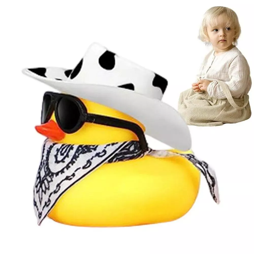 1.Customizable Kit: Enhance your bath time fun with the Cowboy Rubber Duck. The rubber ducky is sold separate from the accessories, which include a mini s unglasses, hat, and denim scarf. Whether you want to dress up your ducky or leave it as is, this set allows you to customize your bath time experience.