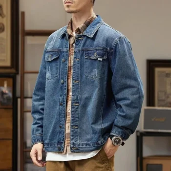 Men’s Oversized Black Denim Jacket – Casual Cotton Motorcycle Coat for Spring and Autumn