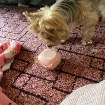 My Yorkie used to hide during bath time, but now she relaxes and enjoys the massage from this brush. I love it even more than she does! It's a great find and a game-changer!