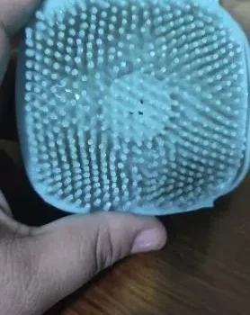 I've used this on my dog a few times now. It's easy to fill with soap, and the entire brush is soft. It makes it easy to wash her legs and feet without causing any discomfort and cleans her effectively.