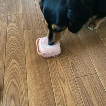 The integrated soap and shampoo dispenser simplifies the bathing process significantly. The soft silicone bristles effectively clean while remaining gentle on my dog's skin. The brush's size is perfect for my large dog, fitting comfortably in my hand and making washing sessions more efficient. My dog seems to enjoy the gentle massage from the bristles during baths. While it's not a miracle solution, this brush certainly makes grooming sessions easier and more enjoyable for both me and my dog.