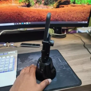 Pretty handy 360 holder, it follows you when you move around, nice for unboxing videos or tutorials. Feels a bit plasticky but apart of that is actually pretty solid, holds my iPhone pro max and also android phone without any issues. overall pretty satisfied!
