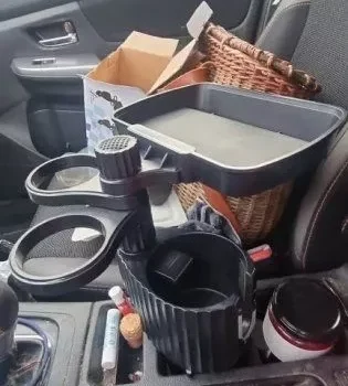 Took this on a 13-hour road trip to Colorado - it was a lifesaver! Super convenient for snacks and drinks, right within arm's reach. After the trip, I detached the tray and now use the spacious cup holders for my water bottle and coffee tumbler. It's been a game-changer!