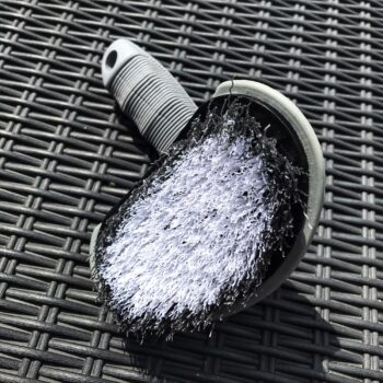 Product looks nice, well shaped and easy to use. Brush is stiff and works fine on tyres. Only thing - rubber handle came off, but it is not a problem. Touch of glue will fix it.