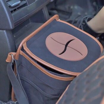 wonderful garbage bag , compact , easy to clean… an indispensable thing, especially for long distance trips. helps keep the car tidy,and besides looks very stylish !
