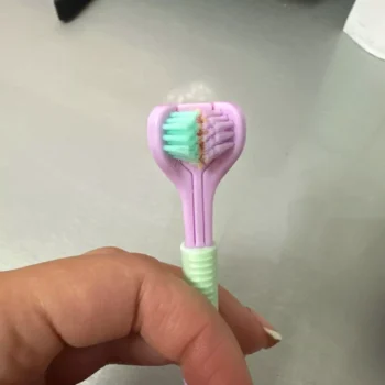I was amazed by how much cleaner my teeth felt after just one use of the three-sided toothbrush. It's designed to clean every surface of your teeth efficiently, and it really delivers on that promise. I've recommended it to all my friends and family