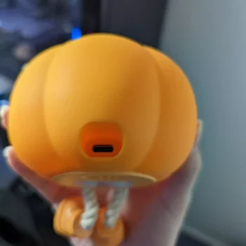 This pumpkin LED night light, let me tell, it's a fantastic addition to my kiddo room. My daughter just can't get enough of how soft and squishy this thing is. It's like her own personal stress ball - but way cooler because it lights up! And as for me I'm all about that durable silicone material they've used. You know what that means right? No worries whatsoever about any breakages or damage – perfect for those tiny hands. But wait,’s more! This isn’t your regular run-of-theill night light; it comes with a dimmable which is honestly such a game-changer. We can now easily adjust the brightness level according to our needs or mood - whether we're reading bedtime stories or simply unwinding from the day, making every moment even more enjoyable than before. And here’s another bonus point: its USB rechargeability feature. This right here saves us from the constant hassle of battery replacements – an absolute life-saver for busy parents like us who are always on-the-go! So not only does this nifty gadget provide comfort and fun for my little one but also convenience and practicality for us adults too! So yeah, if you’re looking around trying to find something unique yet functional as a night light option then look no further because this cute pumpkin LED has got you covered in every possible way.