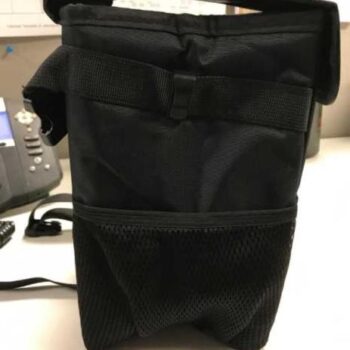 This is a well constructed and sturdy trash bag. The 2 features that I like best are the multiple straps so you have a few different ways to secure it and that it has clips to secure a plastic grocery bag inside for easier clean up. The velcro top with the unique opening allows you to easily place things inside one-handed, but keeps them well contained and out of sight.