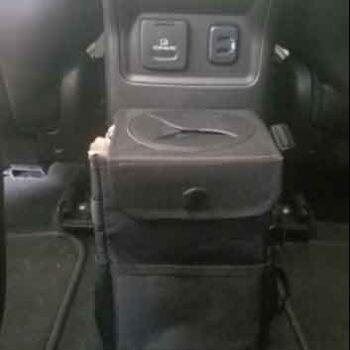 This trashcan works well in our SUV. With three kids and a busy schedule we often eat snacks or food in the car. This is the third trashcan I’ve now bought for a vehicle, and this one they got it right. The size is good and holds quite a bit. The thing I like the most is the top you don’t actually have to undo it or do anything to access the trash can you just push it in the top. My kids broke the last one by stepping on it too many times, and this one actually is elevated off the ground which makes less of a tripping hazard. You can also put a trash liner it so you can just take out the whole bag of trash out quickly and easily. It also had like a bungee cord on it if you didn’t want to use the strap if you wanted to utilize it somewhere else. I put it around my center console so it could be utilized in the backseat.