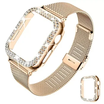 Luxury Milanese Mesh Watch Band with Diamond Case for 38mm-45mm Sizes